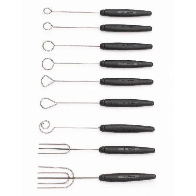 La broche à tremper est utilisé pour tremper des préparations en confiserie ou des fruits dans du chocolat en évitant de laisser des marques. La broche à tremper permet de réaliser un enrobage chocolat parfait et sans trace.