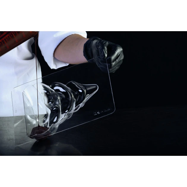 Placez votre Moule Chocolats de Noël au réfrigérateur pendant 30 minutes environ. Au-dessus de votre plan de travail, retournez le Moule Pavoni pour démouler les différentes pièces de chocolat que vous devrez assembler. Pour procéder à l’assemblage, il vous faudra faire fondre légèrement les rebords d’une des moitiés de Sapin en Chocolat sur une plaque chaude, puis la souder à son autre moitié.